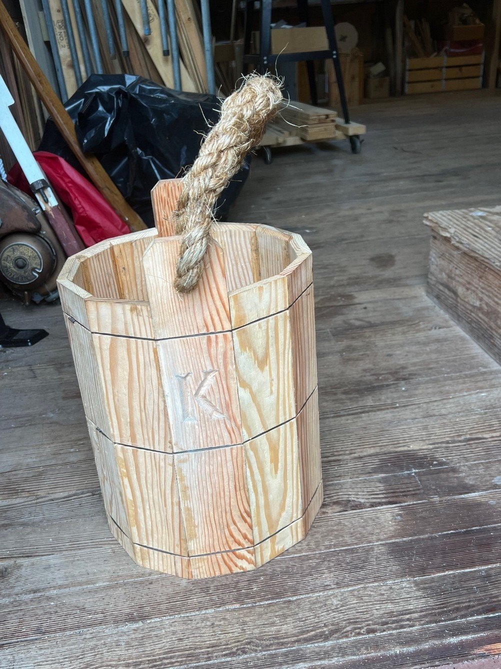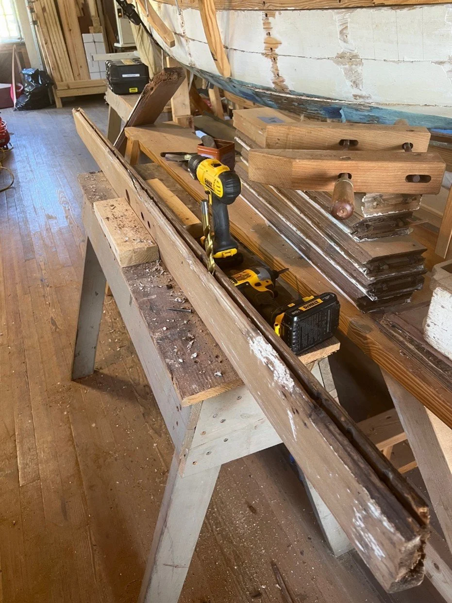 Barnacle Buckets. A few years back, the decision was made to replace the 5-gallon plastic trash buckets in the Boathouse with more “era-appropriate” wooden ones—hence, the Mike Chapman designed “Barnacle Bucket.” Now comes the request from our “historic” sister institution down the street, The Kampong (home of renowned plant explorer David Fairchild and his wife, Marian (daughter of Alexander Graham Bell). A new interpretive initiative featuring the office of Dr. Eleanor Galt-Simmons (an earlier resident of the property) has led to a similar need to replace those ubiquitous 5-gallon plastic buckets and a request for some of our wooden ones. Three buckets were requested and production is almost complete!