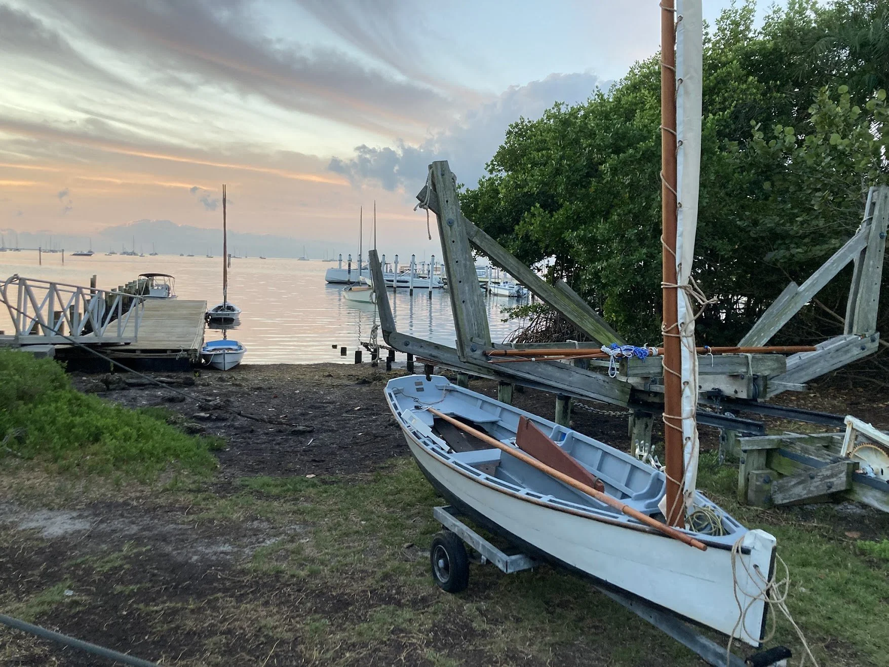 Morning breaks over the boats at the shore of The Barnacle