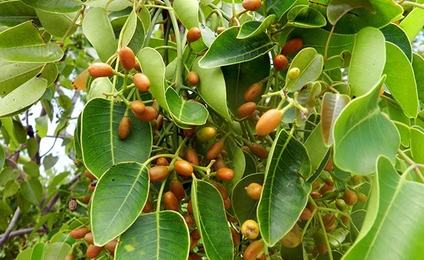 Gumbo limbo leaves and fruit on a female tree. Image c/o Wild South Florida.